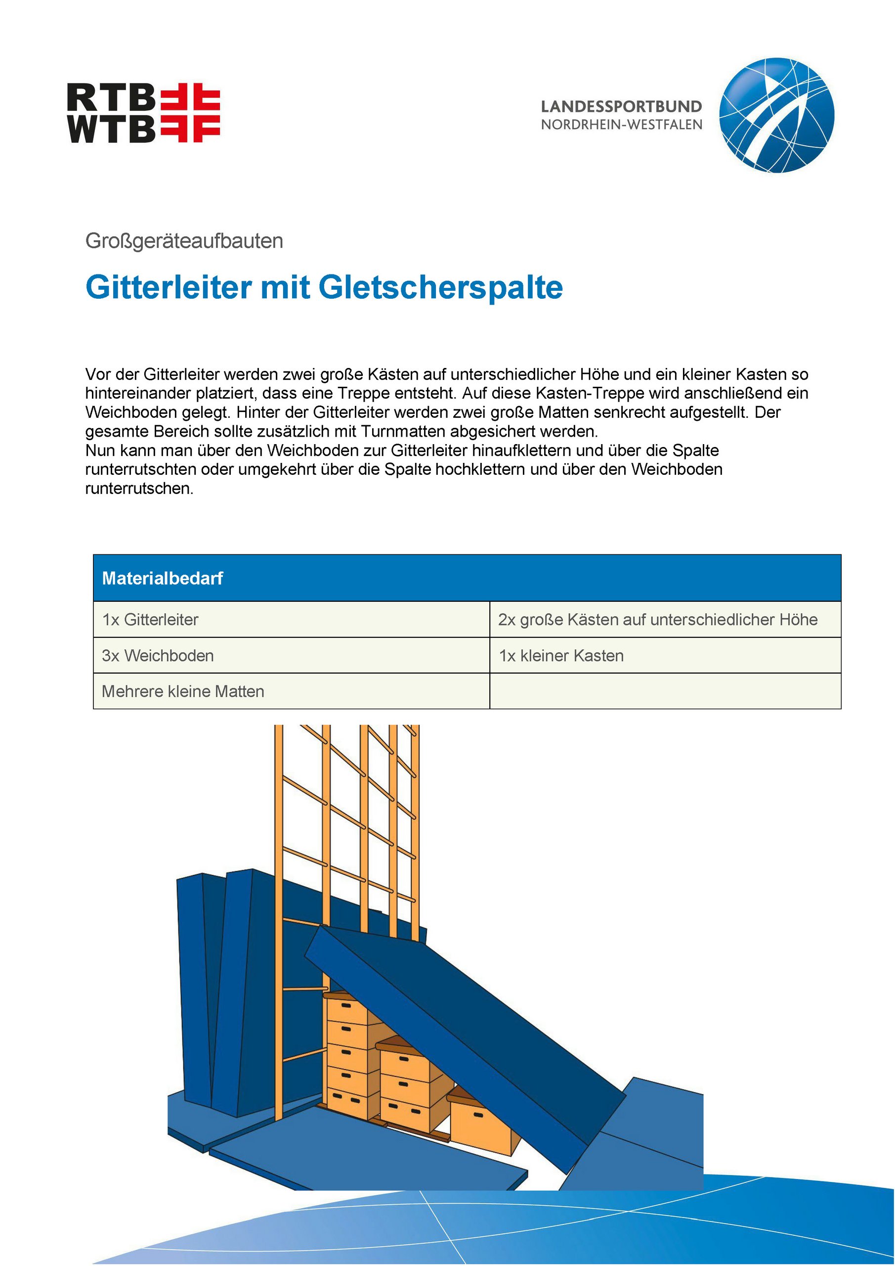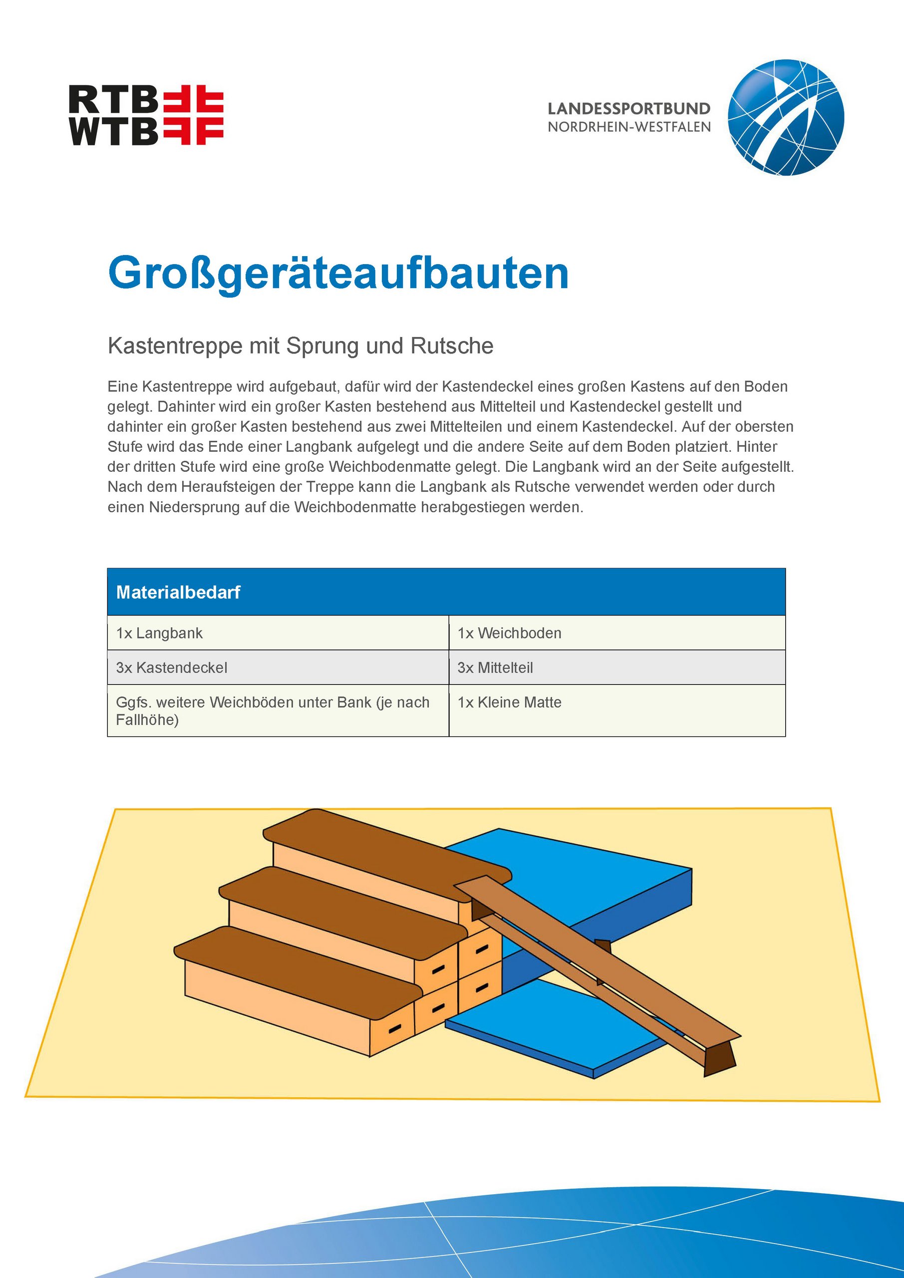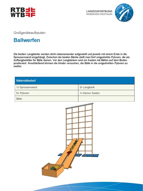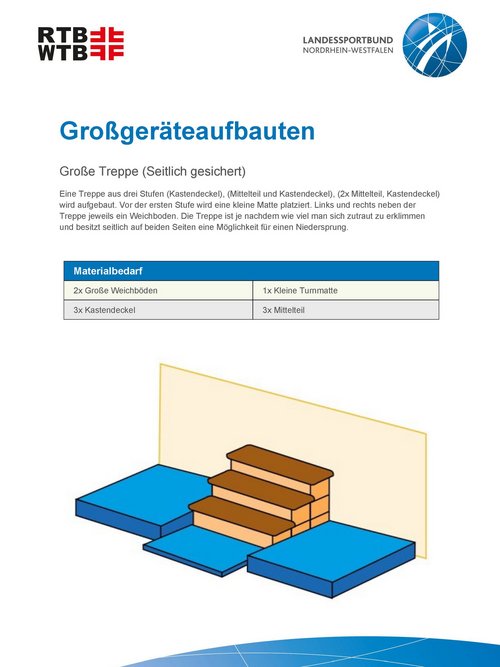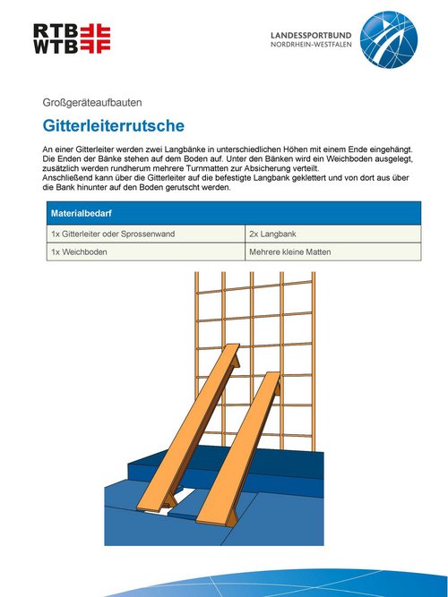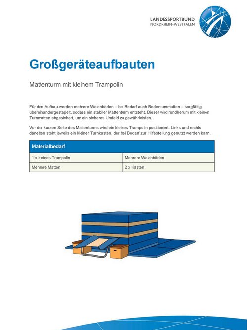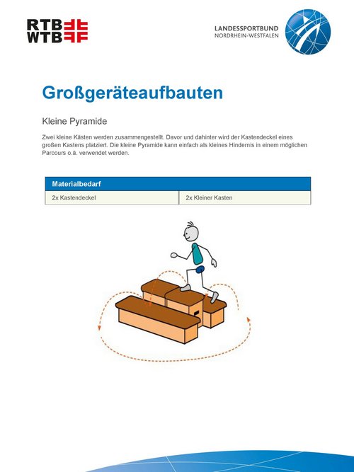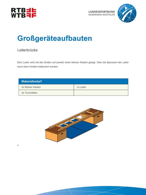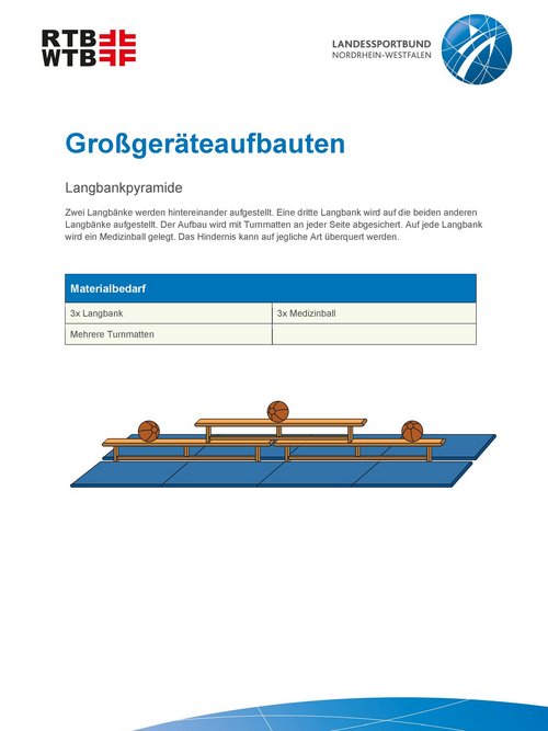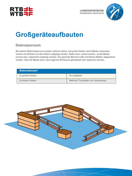 Unsere Anleitungen bieten kurze und informative Einblicke in die Möglichkeiten, verschiedene Großgeräteaufbauten mit unterschiedlichen Geräten und Materialien zu realisieren. Werde kreativ und plane einen Parcours, erfinde eine passende Geschichte oder trainiere spezielle Eigenschaften mit einem Aufbau.