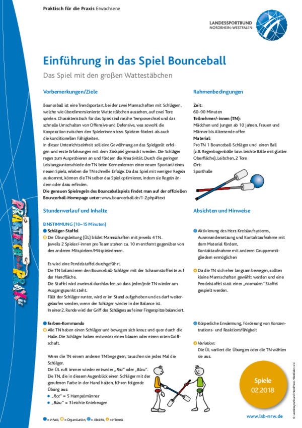 Bounceball ist eine Trendsportart, bei der zwei Mannschaften mit Schlägern, welche wie überdimensionierte Wattestäbchen aussehen, auf zwei Tore spielen. Charakteristisch für das Spiel sind rasche Tempowechsel und das schnelle Umschalten von Offensive und Defensive, was sowohl die Kooperation zwischen den Spielerinnen bzw. Spielern fördert als auch die konditionellen Fähigkeiten.