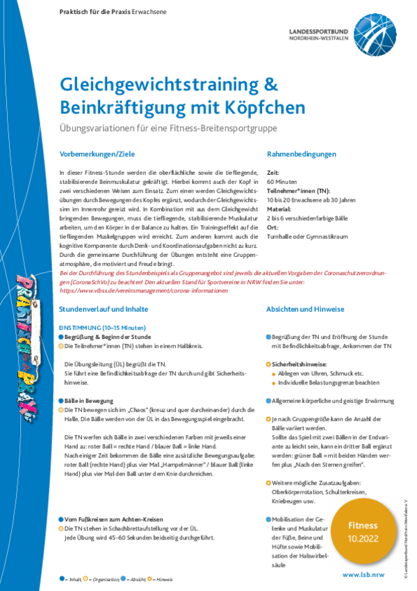 Stundenbeispiel Gleichgewichtstraining & Beinkräftigung mit Köpfchen
