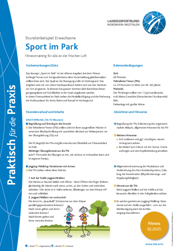 In dieser Fitnesseinheit im Park stehen die Muskelkräftigung und die Förderung der Kraftausdauer für Arme, Beine und Rumpf im Vordergrund.