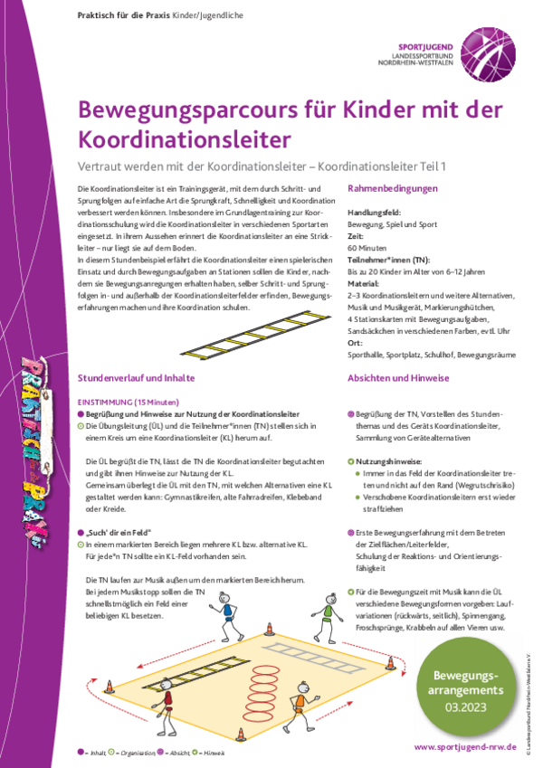 Stundenbeispiel Bewegungsparcours für Kinder mit der Koordinationsleiter