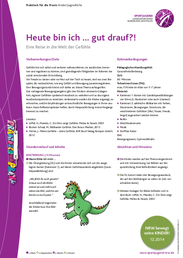 Gefühle bei sich selbst und anderen wahrzunehmen, sie ausdrücken, benennen und regulieren zu können, sind grundlegende Fähigkeiten im Rahmen der sozial-emotionalen Entwicklung. Vor Freude zu tanzen oder vor Wut auf den Tisch zu hauen, sind nur zwei Beispiele, die verdeutlichen, wie eng Gefühl und Bewegung zusammengehören.
