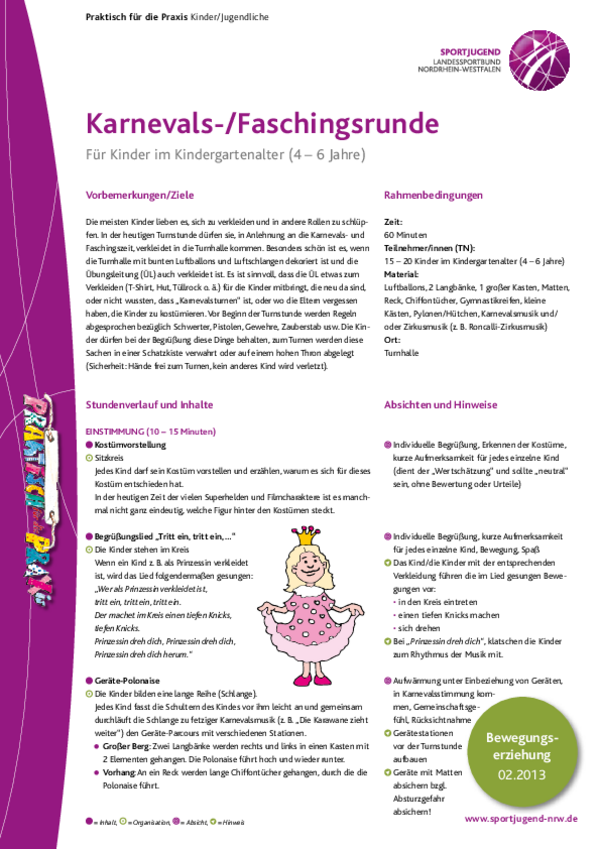 Die meisten Kinder lieben es, sich zu verkleiden und in andere Rollen zu schlüpfen. In der heutigen Turnstunde dürfen sie, in Anlehnung an die Karnevals- und Faschingszeit, verkleidet in die Turnhalle kommen.