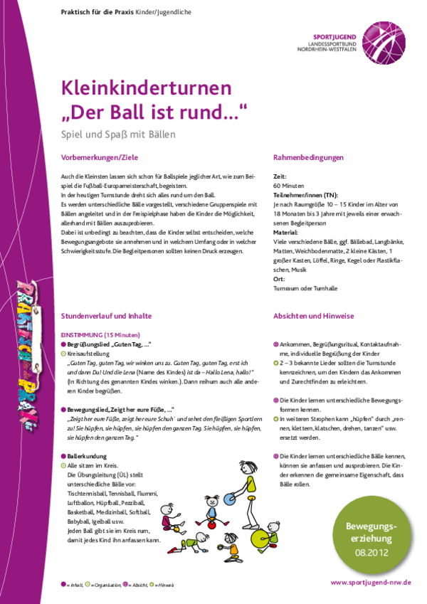Auch die Kleinsten lassen sich schon für Ballspiele jeglicher Art, wie zum Beispiel die Fußball-Europameisterschaft, begeistern. In der heutigen Turnstunde dreht sich alles rund um den Ball.