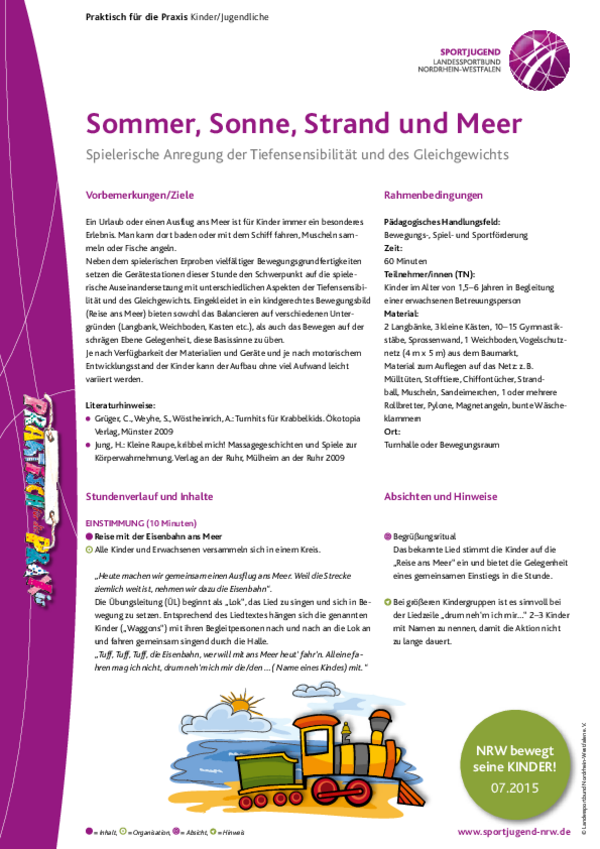 Neben dem spielerischen Erproben vielfältiger Bewegungsgrundfertigkeiten setzen die Gerätestationen dieser Stunde den Schwerpunkt auf die spielerische Auseinandersetzung mit unterschiedlichen Aspekten der Tiefensensibilität und des Gleichgewichts.