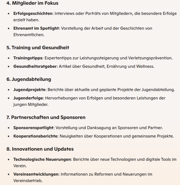 Personalisierung: Die KI kann die Texte der jeweiligen Zielgruppe (z.B. aktive, passive Mitglieder, Eltern, Sponsoren) anpassen.