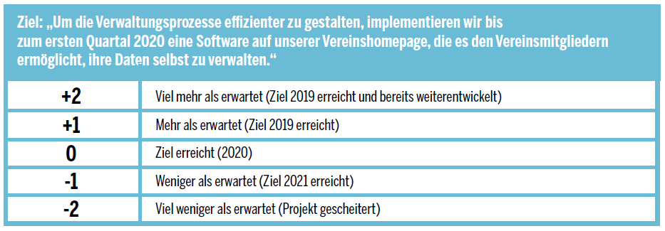 Eure Maßnahmen lassen sich anhand eines einfachen Schemas evaluieren. Dies hilft euch einzuschätzen, wie erfolgreich die Maßnahme umgesetzt wurde. Dabei ist es wichtig, dass ihr zu Beginn detaillierte Ziele (s. SMART-Methode) mit Indikatoren (messbar) festgelegt habt.
